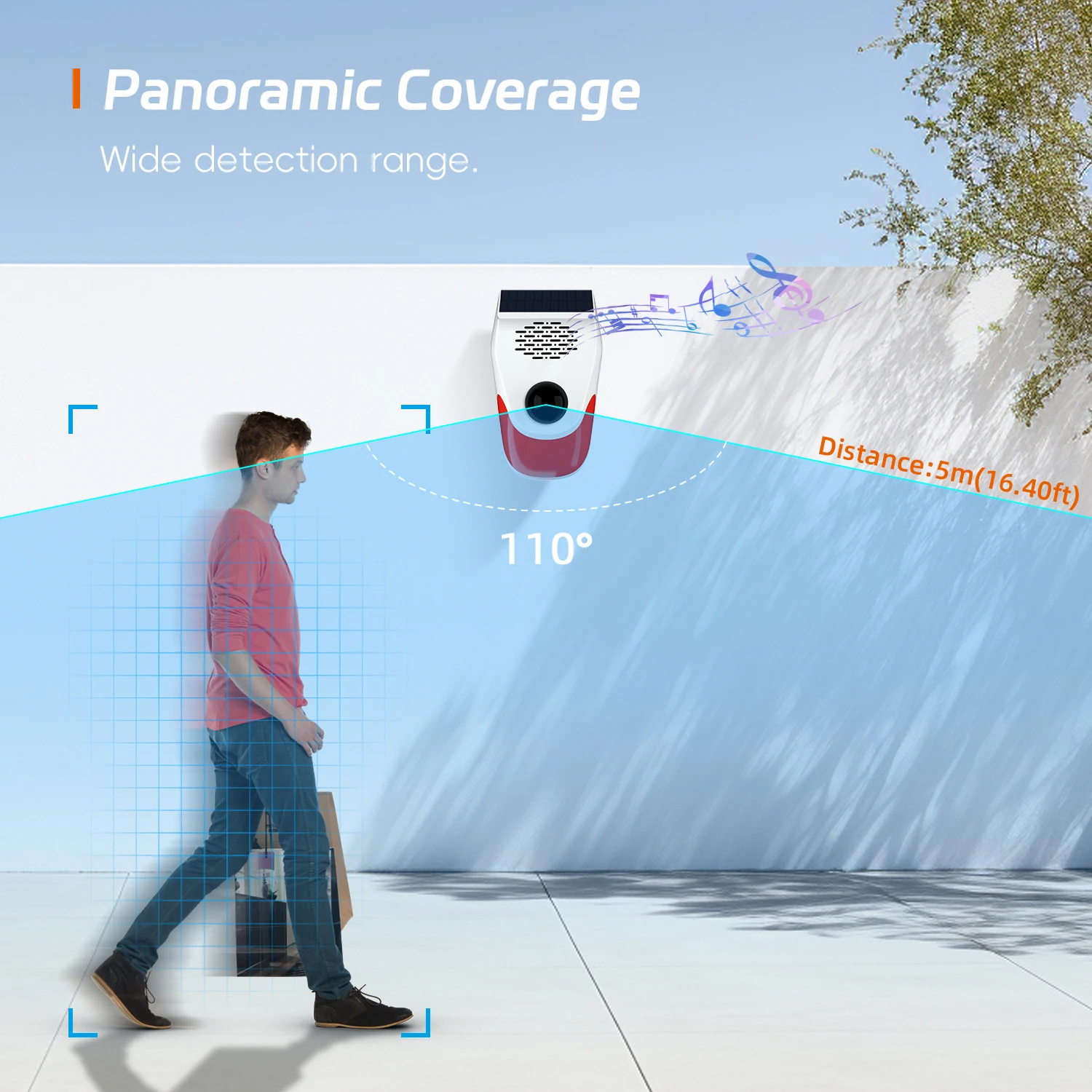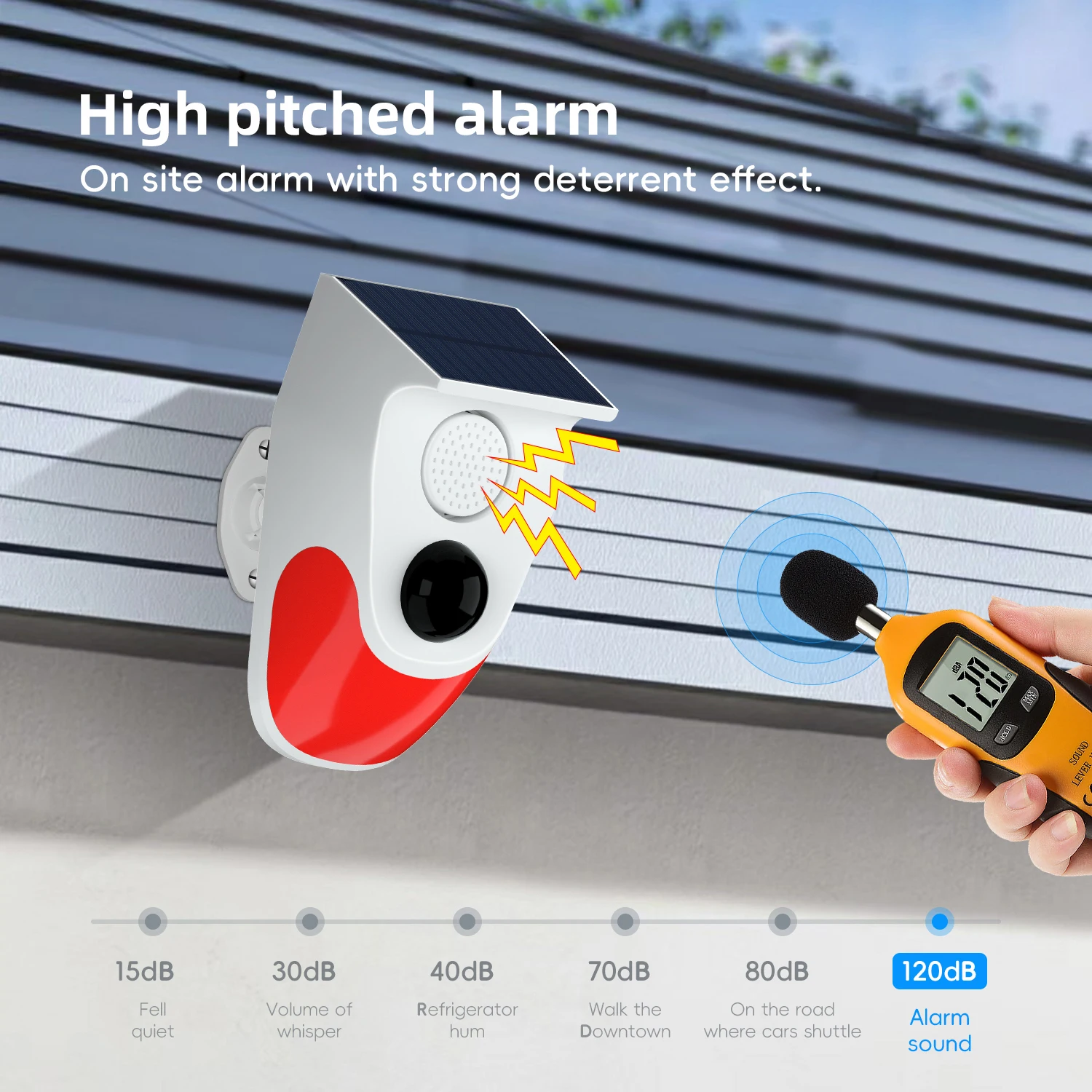 Solar Strobe Alarm Light with Motion Sensor Siren Outdoor Alarm Siren with Remote Controller 120db Sound Security Siren Light