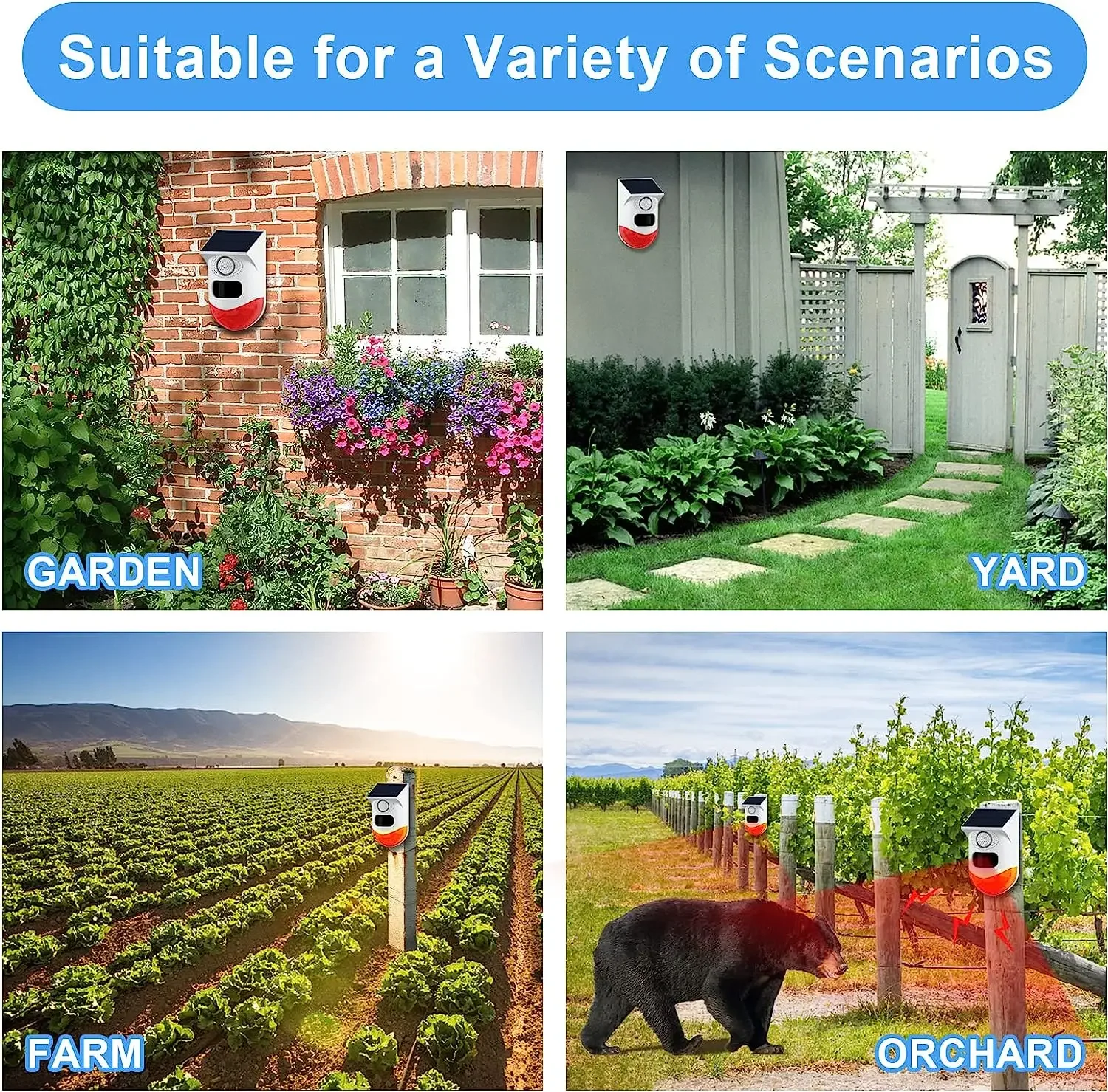 Solar Strobe Alarm Light with Motion Sensor Siren Outdoor Alarm